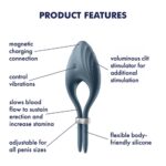 Το κομψό Satisfyer Duelist ρυθμιζόμενου μεγέθους από σιλικόνη εξασφαλίζει τη συγκέντρωση αίματος κατά τη διάρκεια του ερωτικού παιχνιδιού και εντείνει τη στύση. Ο τριγωνικός κλειτοριδικός διεγέρτης με έντονες δονήσεις ικανοποιούν και τους δύο παρτενέρ.