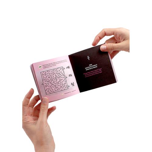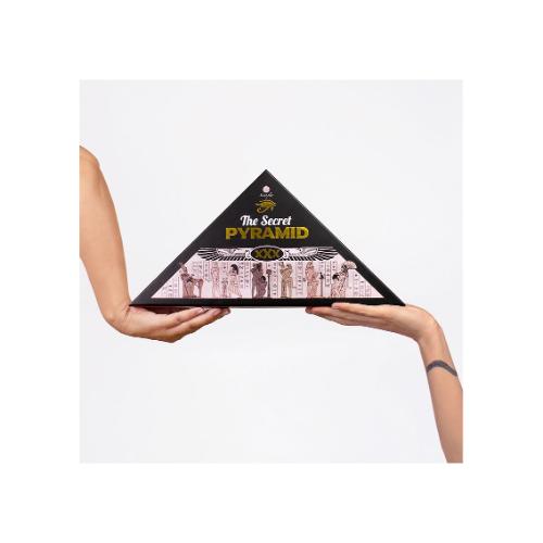 GAME RULES: Players will begin the game by placing pawns on the START box. The eldest player will start. They must roll the dice and advance as many boxes as stated. After reading the box’s number, they’ll have to look up the corresponding test in the “Instructions & Forfeits Book”. The booklet includes a combination of logical tests and spicy challenges that will increase in intensity as the game progresses. The player who doesn’t fulfil the proposed challenge will not take part in the next round. The hourglass must be used to measure 1 minute for the challenges that require so, and if 2 or more minutes are required it will be flipped as many times as necessary. Once the test has been performed and fulfilled, it’ll be the turn of the player to the left. The game will end when one of the players reaches the eye of Ra at the top of the Pyramid. They will become a divine and immortal pharaoh, venerated by the others, who will have to satisfy all of their fantasies.