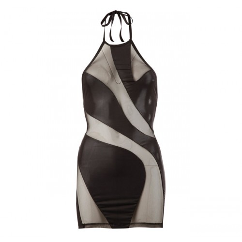 This shiny dress with transparent elements at the front will give you a spicy look.