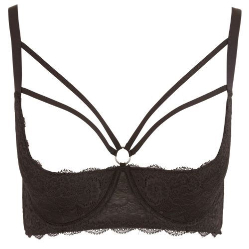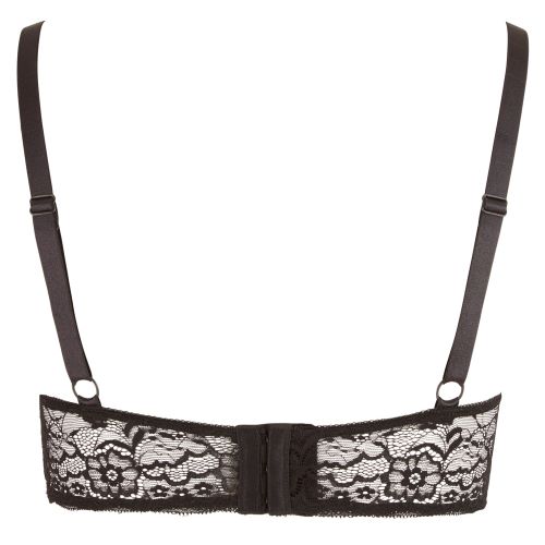 This seductive underwired shelf bra is made out of black lace and has a decorative ring between the slightly padded cups. There is a hook fastener at the back. Get this shelf bra now and show off your breasts in an extremely erotic way. With stretchy straps for a perfect fit. 90% polyamide, 10% elastane.