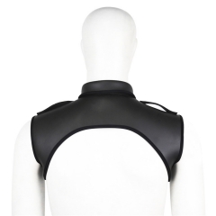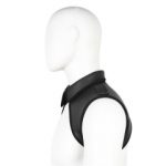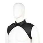 Black leather shoulder vest with neck clasp to make your looks special that highlights your prestige and capacity. Made of soft leather. One size.