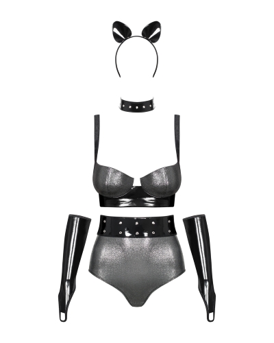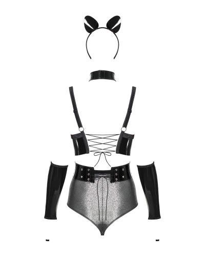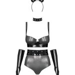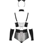 Durable fabrics (bra, panties, choker, gloves, belt – 90% polyamide, 10% elastane; ears – 45% PVC, 40% plastic, 10% metal, 5% polyester)