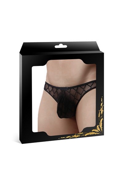 Offered by your sexy lingerie supplier Man brand Paris Hollywood, this black pants looks great. Soft and comfortable in a transparent mesh grid, this black slip let see the principal.
