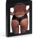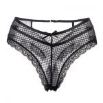 A superb cut and openwork on the loins in a soft and chic black lace . This black tanga will very quickly find takers.