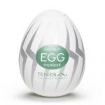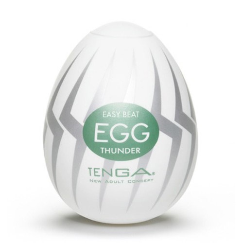 The Tenga Egg Thunder is an egg-shaped male masturbator, featuring a stretchy inner sleeve with a thick cloud-formation texture to give a unique sensation to the penis.