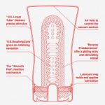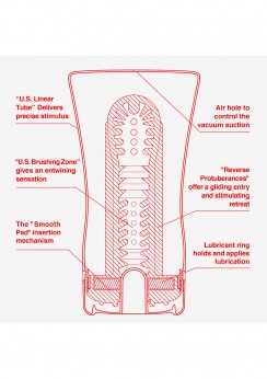 Now with a new soft tube, this cup gives you complete control of the tightening sensation. A feeling that suits you, is controlled by how tight or how light you hold the cup. Enjoy a wide variety of sensations from rubbing, stroking, pushing, etc. A notable feature is the “compression” ability.