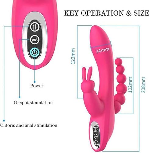 THE HAPPY-HAPPY BUNNY….. Triple Vibrating Stimulator. THE HAPPY-HAPPY BUNNY….. is the best lover for a girl who wants everything at once. Vaginal stimulation, clitoral and anal stimulation – pleasure has never been so complete. It has 2 motors: in the main (middle) vibrator and at the base of the clitoris. The bunny ears move playfully and gently stimulate the clitoris. The smoothly developing anal process is ideal for gradual insertion. The toy is made of high quality plush silicone.