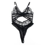 The design incorporates transparent lace details that add a touch of delicacy and refinement, while the strategic hollow cut cuts enhance the silhouette, revealing the skin in a subtle and seductive way. The combination of lace and black, classic and timeless, adds an air of mystery and sophistication that will not go unnoticed.