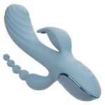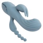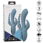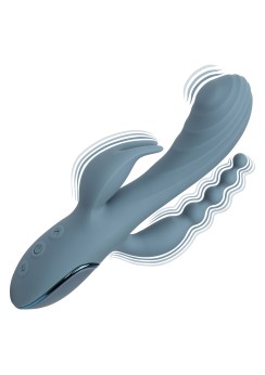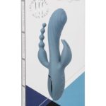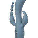 Indulge your wildest fantasies with the wickedly powerful III Triple Ecstasy. Experience pleasure like never before with the powerful triple action rechargeable massager with a pulsating shaft, beaded tail, and contoured stimulator. This daring triple penetrator is made for fulfilling pleasure. The powerful triple penetrating massager uses 3 speeds of pulsation in the sensually curved shaft for g-spot teasing and shuddering penetration. While a beaded tail thrills and a sensual Rabbit teaser flickers to the rhythm of 10 powerful independent functions of vibration. The rhythmic vibe teaser and tail deliver show-stopping stimulation while the contoured shaft indulges with deep rumbling pulsations. Control and customize your pleasure play with the independently controlled functions. Recharge the massager in 2.5 hours with the provided USB charging cable to enjoy 30 minutes of high-speed action or 90 minutes of low speed stimulation. Enjoy frustration-free control with the easy-touch 3-button control pad and security lock feature for travel-ready pleasure. The virtually seamless body and self-sealing charging port allow you to take this versatile waterproof vibe for a dip. The premium silicone is body safe, unscented and phthalate free to keep you most sensitive spots happy and healthy.