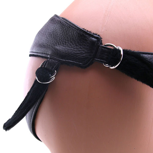 Matching, plush lined polyester straps secure comfortably at the hips and back for a close and snug fit, easily step into the harness like a pair of panties and adjust the straps to suit your size.