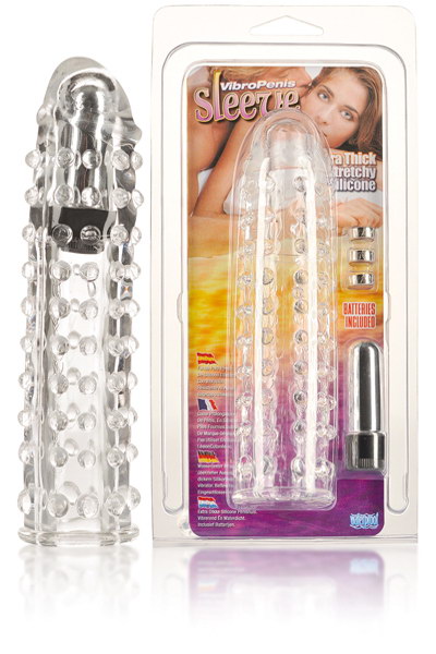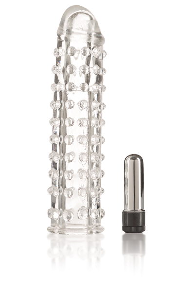 Vibrating sheath resistant jelly. Positions on the penis or a vibrator. It is lined with spikes that carry stimulation on intimate walls. The compartment is located at the top end is suitable for a small vibrator 4 cm to increase sensations. Crystal color.
