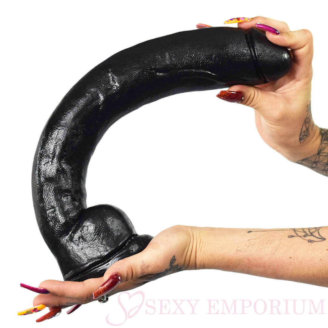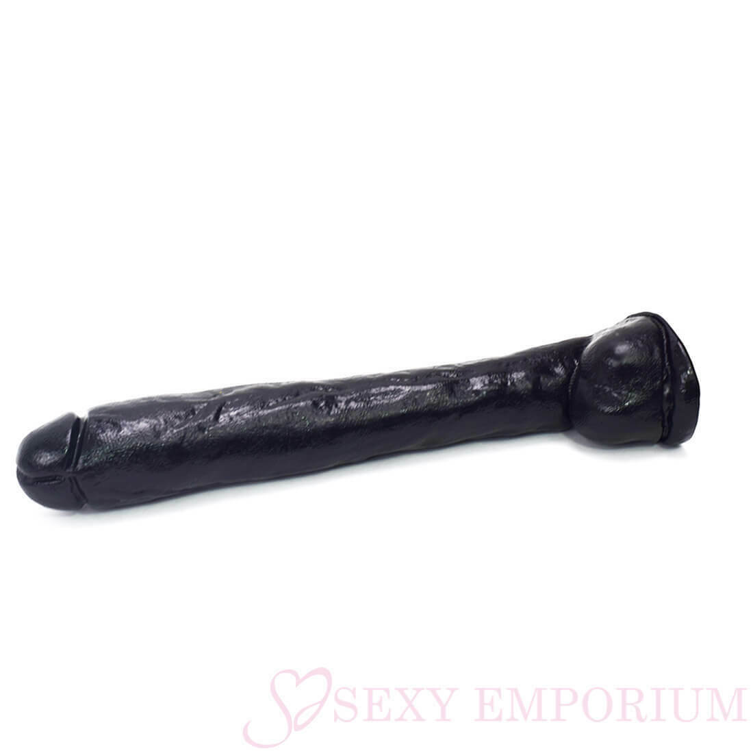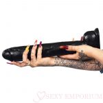 A true heavy hitter weighing in at over 4.5lbs and 15″ from tip to balls with a full 13″ insertable length, this huge black cock will offer a challenge with every inch of the thick veined shaft as you slide it in as far as you can take it. That’s over a foot of thick hot cock! Feel the fat shaft stretch you to your limit. Mount the firm suction cup base to any flat surface and this monster cock will stand up for anything you want to dish out. Take this knockout home today, and see if you can go the full 12 rounds.